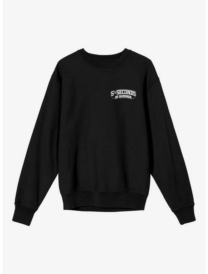 5SOS is back, which means you need a style that will take you into the colder months. This sweatshirt has a large drawn skull on the back with heart eyes, and the band’s text logo on the front chest.