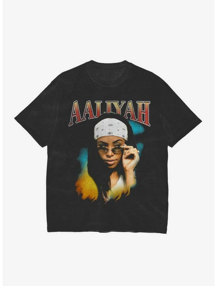 Give everyone the side-eye while wearing this tee featuring an image of Aaliyah with her name above.Β