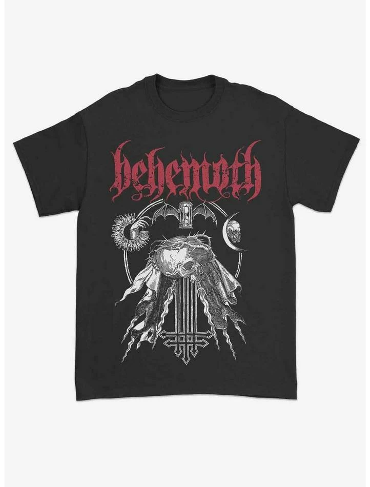 We’re living in a post-God Nirvana, so why not grab a new Behemoth tee to match the mood? This style features a crown of thorns set atop a skull with evil and occult symbols surrounding it.