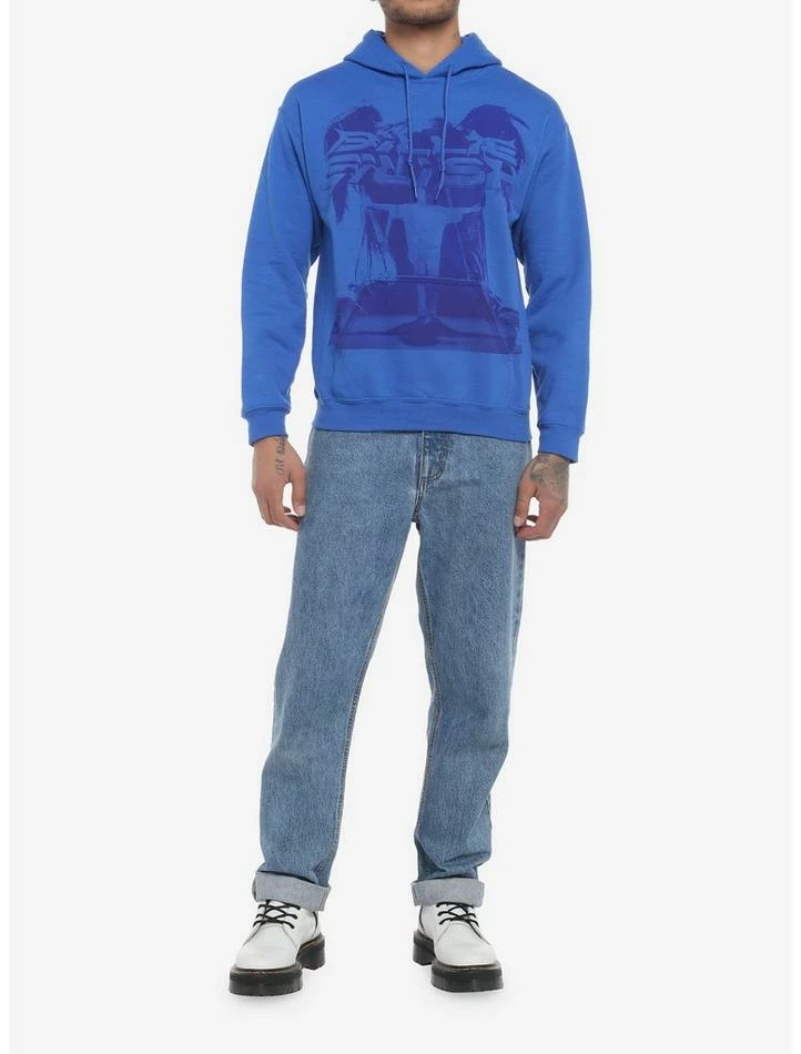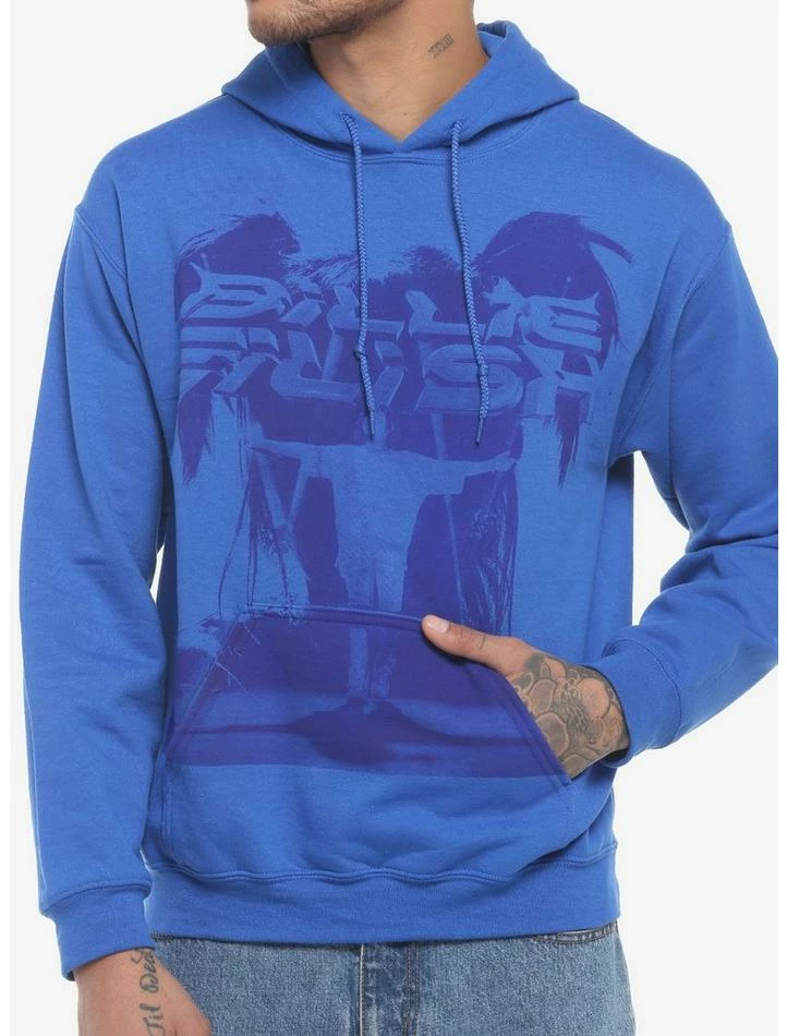 Billie Eilish doesn’t want you to get cold — so grab this hoodie featuring a blue print of the singer’s text logo and a portrait of her with her arms out. Drawstring hood and front kangaroo pocket.