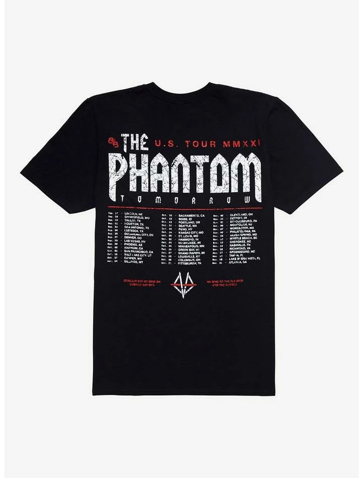 Are you ready for the next Black Veil Brides tour for The Phantom Tomorrow? Get ready with new album merch. This tee features album art inspired by the cover on the front, and tour dates on the back.