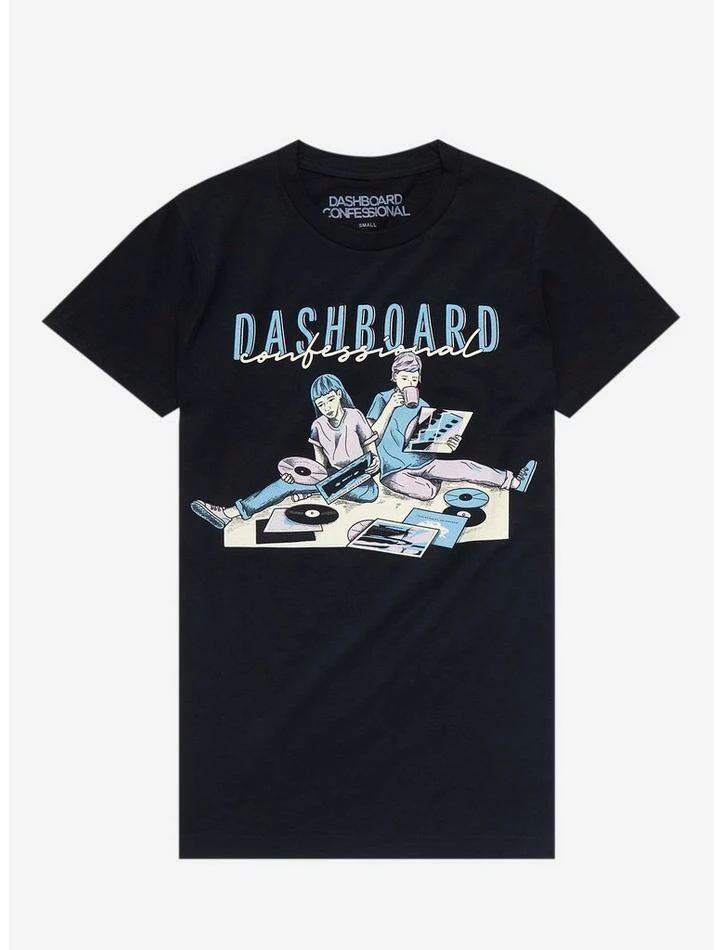 Listening to vinyl is one of the best pastimes — and Dashboard Confessional agrees. This tee features a pastel graphic of two people having a record listening party, with the band’s name up top.