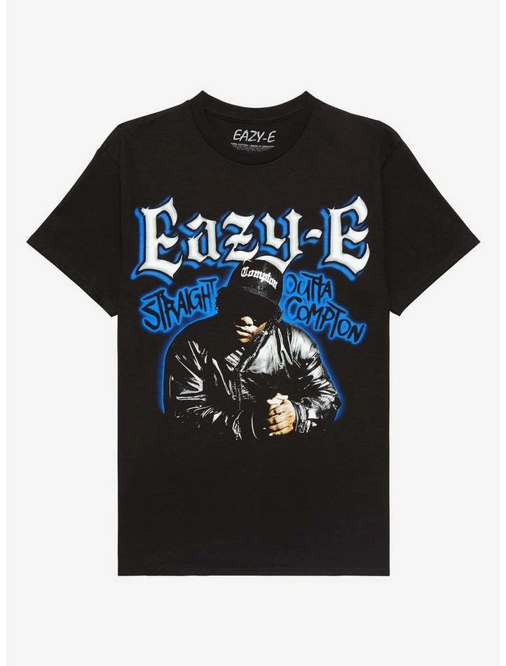 West Coast rap legend Eazy-E is comin’ to your tee drawer with this tee featuring his photo and airbrush-style text of his name and “Straight Outta Compton.”