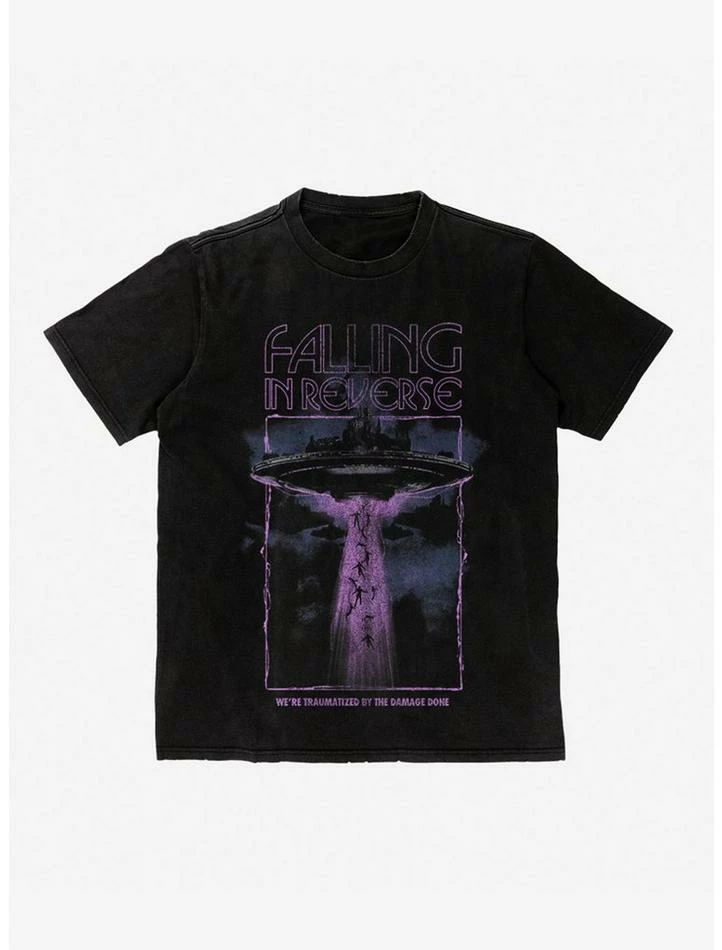 Falling In Reverse has come roaring back with the banger “Zombified”. This tee shows the band’s logo plus a lyric from the song, and a graphic of a spaceship abducting people.