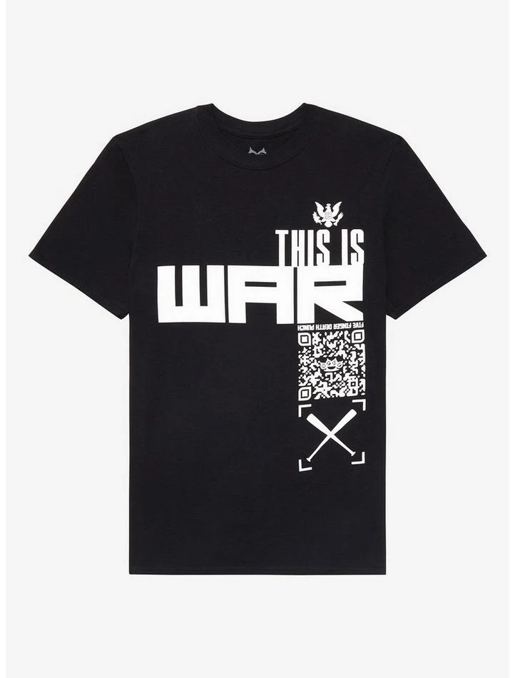 Add more to your Five Finger Death Punch collection with this tee! Inspired by “This Is War,” this tee features the track’s title on the front with a QR code, plus “5FDP F8” on the back.