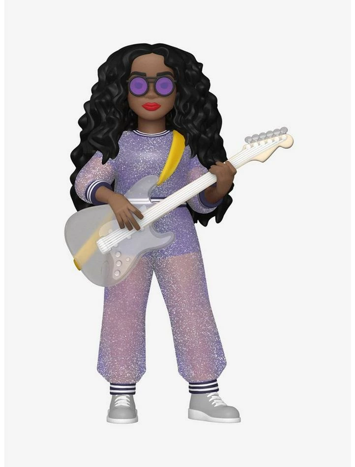 Go for GOLD in your music collection with the new Funko GOLD, premium vinyl figure of R&B artist H.E.R. To commemorate an iconic performance of her career, she is shown wearing a sparkly, translucent purple outfit with her signature dark shades from her 2019 Grammys performance, shredding on a clear-bodied electric guitar.