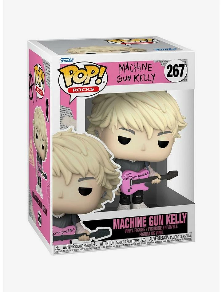 Get ready for the next big artist for your music collection! It’s Pop! Machine Gun Kelly, ready to rock with his pink guitar in hand—the one made famous from the album cover Tickets to My Downfall. In fact, Pop! Machine Gun Kelly’s guitar is signed with the printed words “I’m selling tickets to my downfall.”