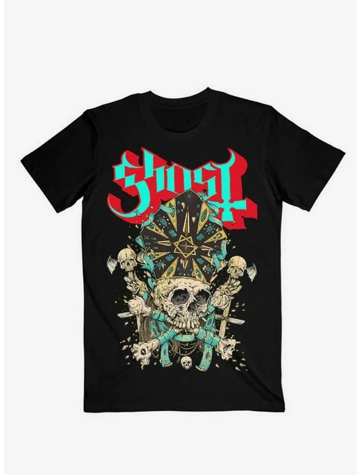 With Ghost in its Impera era, you’ll need the freshest drip to match. This tee features a large graphic of Papa Emeritus IV’s skull with crossbones below.