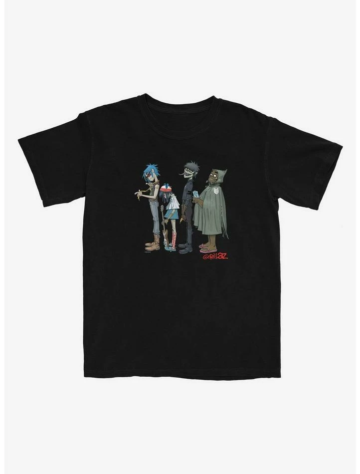 Need something to wear to the next Gorillaz show? How ’bout this style, which features the memberz standing in a line and the band logo below?