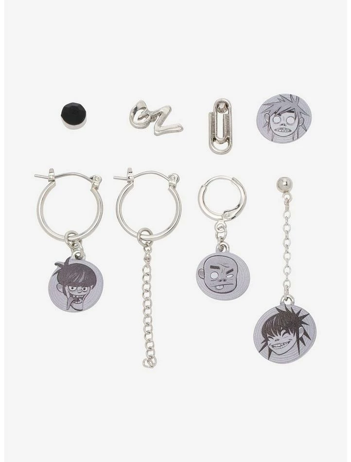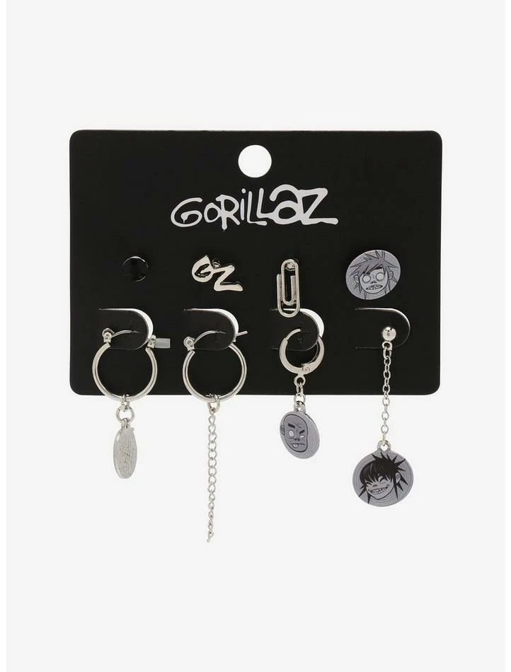 Time to tune into the virtual concert? Rep your fave 2D band with these Gorillaz earrings! This set of mismatched earrings features drops, studs and mini hoops of your favorite band members, plus studs of their logo and more.