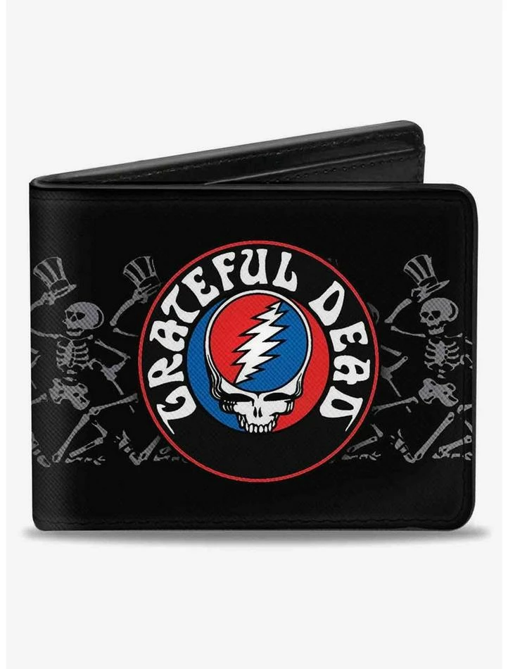Best Pirce ๐ Grateful Dead Steal Your Face Logo Dancing Skeletons Bifold Wallet ๐ฅฐ