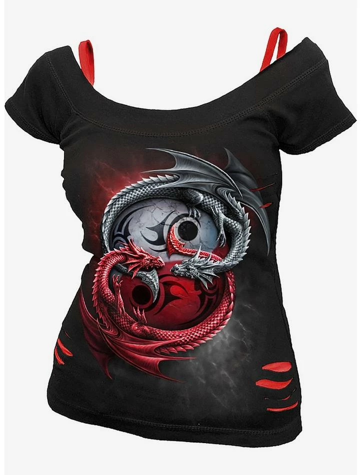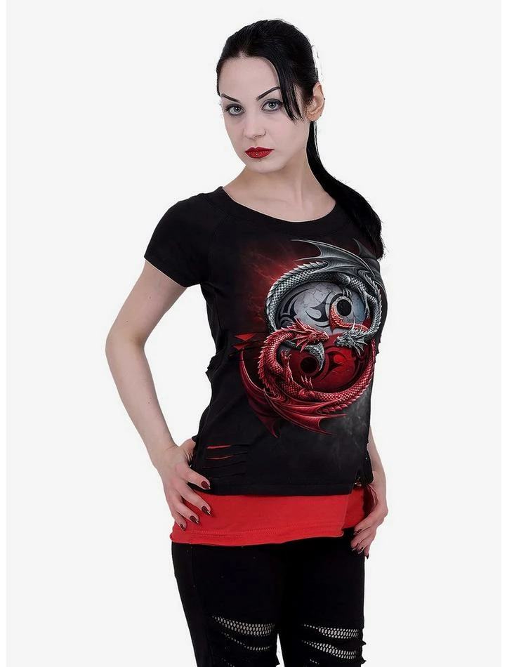 Wholesale π Infinity Dragons 2 In 1 Ripped Red Black T-Shirt π§¨