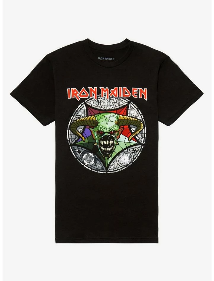 Flash Sale โค๏ธ Iron Maiden Legacy Of The Beast Stained Glass Boyfriend Fit ๐ง Girls T-Shirt ๐