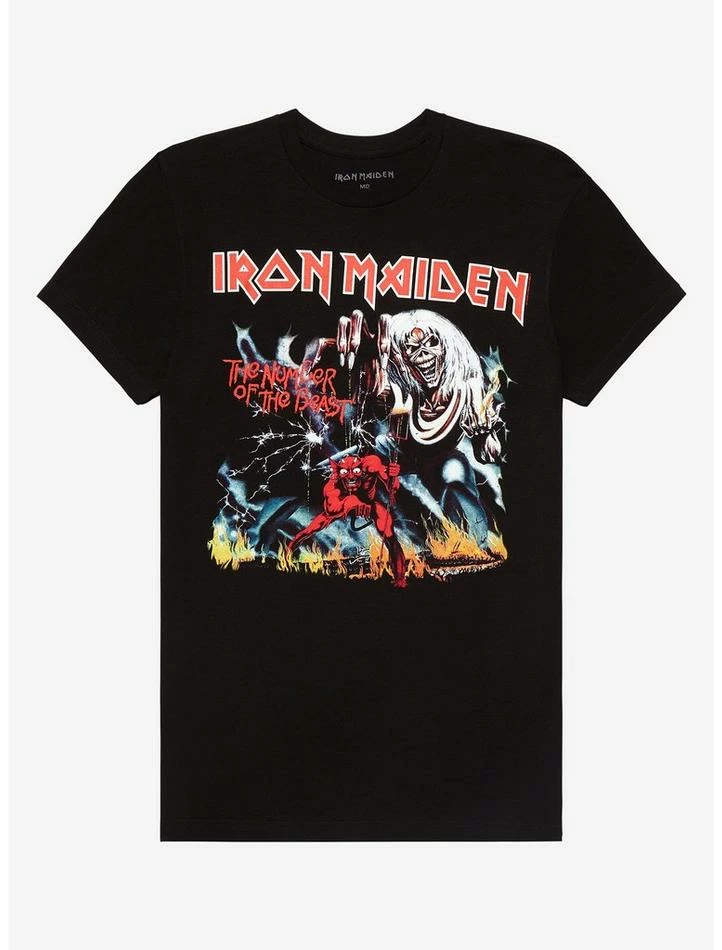 Maiden’s “The Number of the Beast” is one of those songs we could listen to forever and never get bored. Epic, dramatic, evil…and those guitar solos! This tee honors the iconic track with the album cover on the front and lyrics on the back. 666!