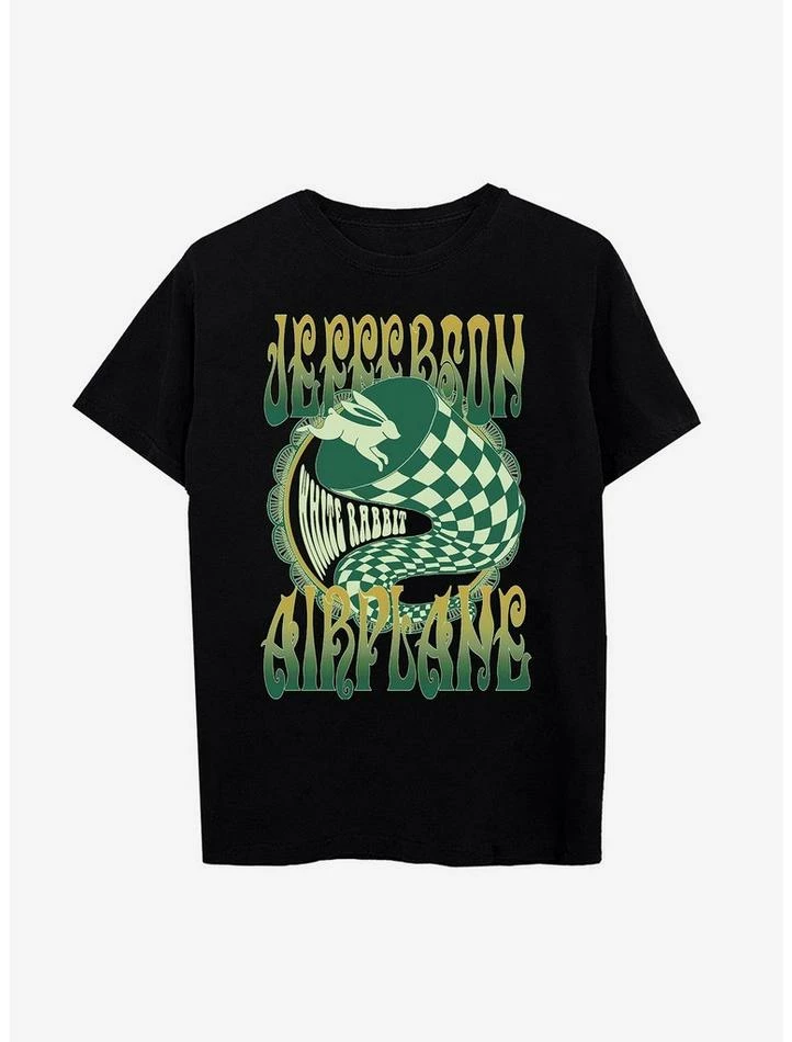 Rep your favorite Jefferson Airplane track in this black tee featuring a “White Rabbit” inspired graphic on the front.Β