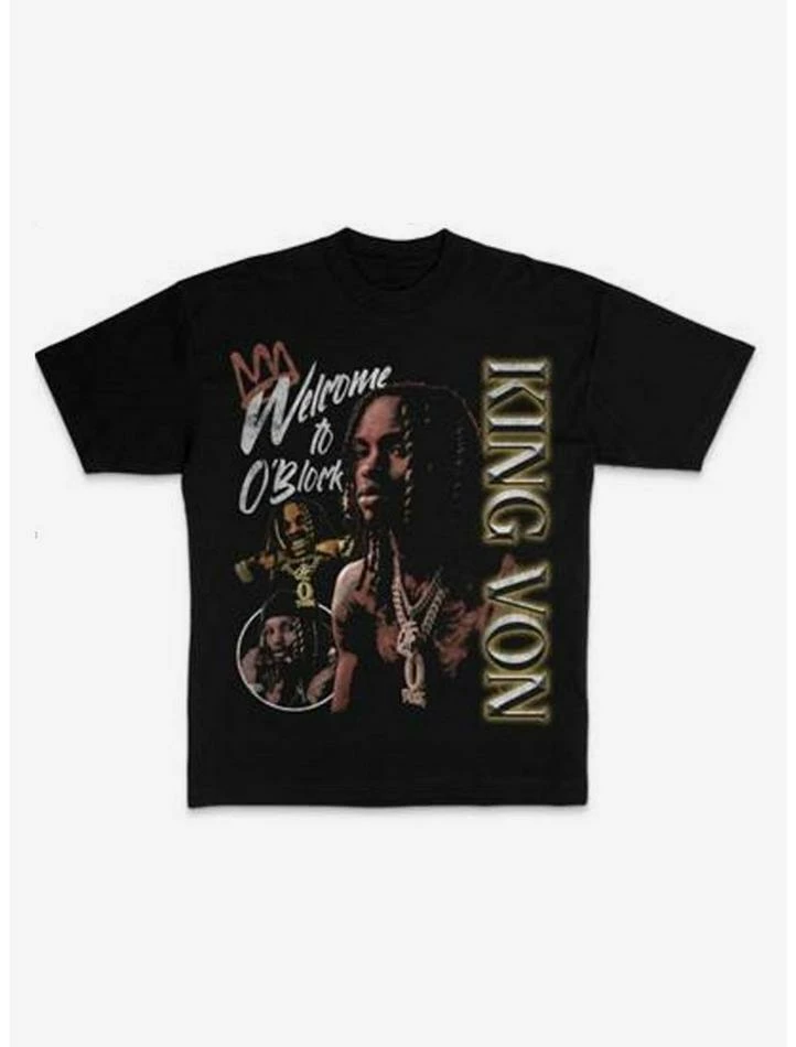 Rep your favorite King Von album with this tee! Inspired by Welcome to O’Block, this tee features a collage of the rapper and the album’s title printed above.