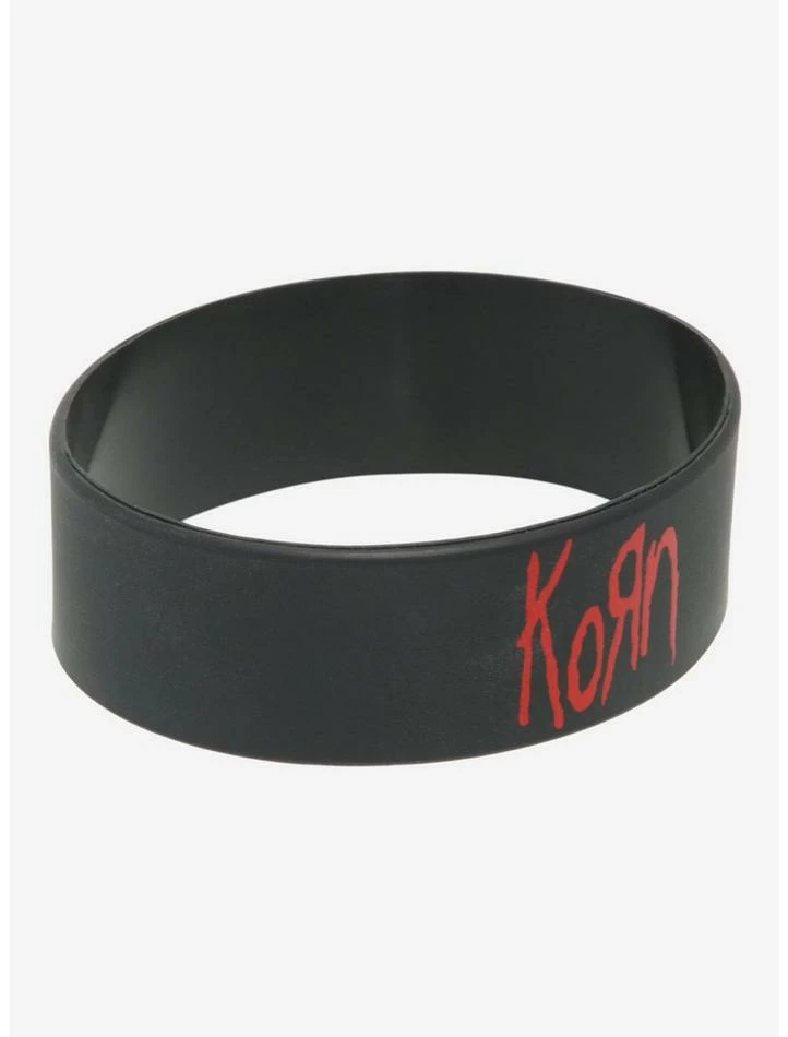 Your concert ‘fit wouldn’t be complete without this staple accessory! Rep your fave band subtly with this rubber bracelet featuring Korn’s text logo in red.