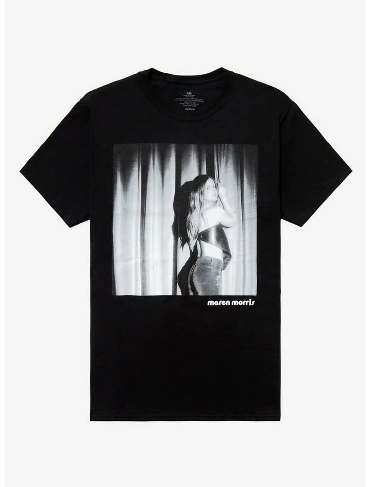 You can stop losing your mind now. We’re meeting you in the middle with this Maren Morris tee! Featuring a black and white photo of her holding onto a curtain backdrop and her name printed in the corner.