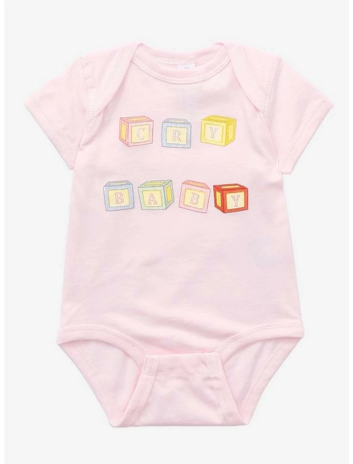 Β Is your baby being a cry baby? Make sure your little one has the best music taste with this light pink infant bodysuit featuring “Cry baby” in a wooden letter block design. It has triple snap-button closure.