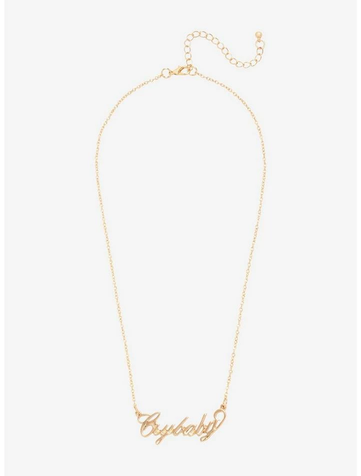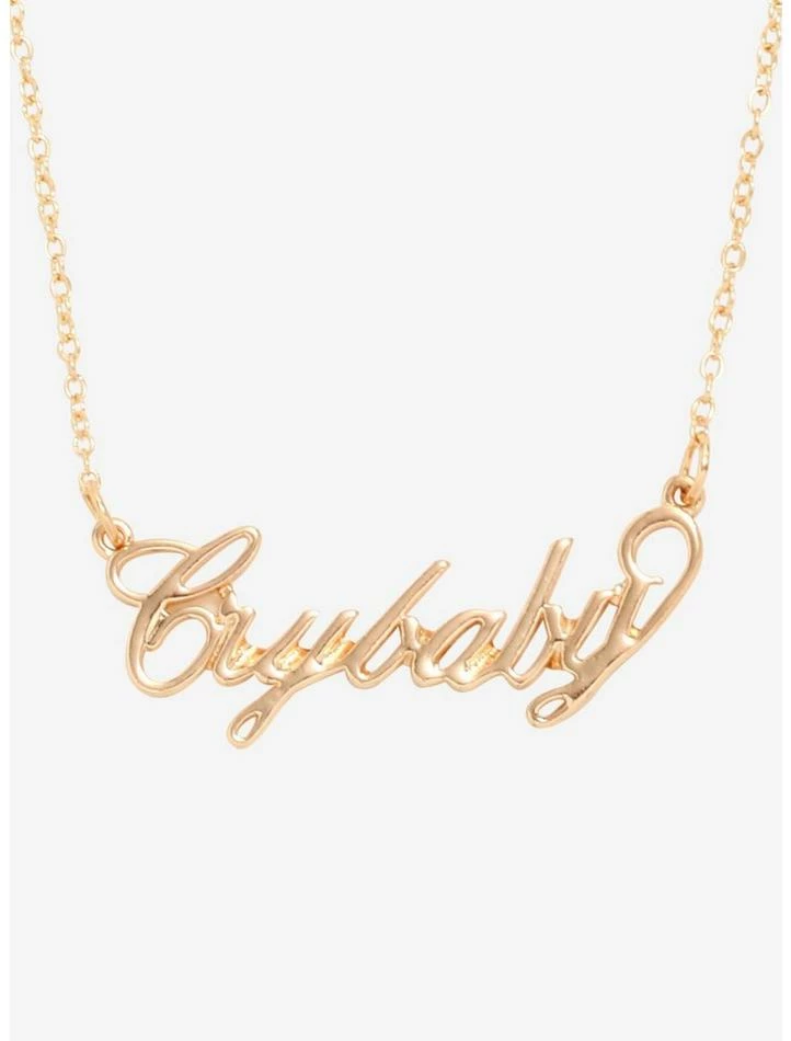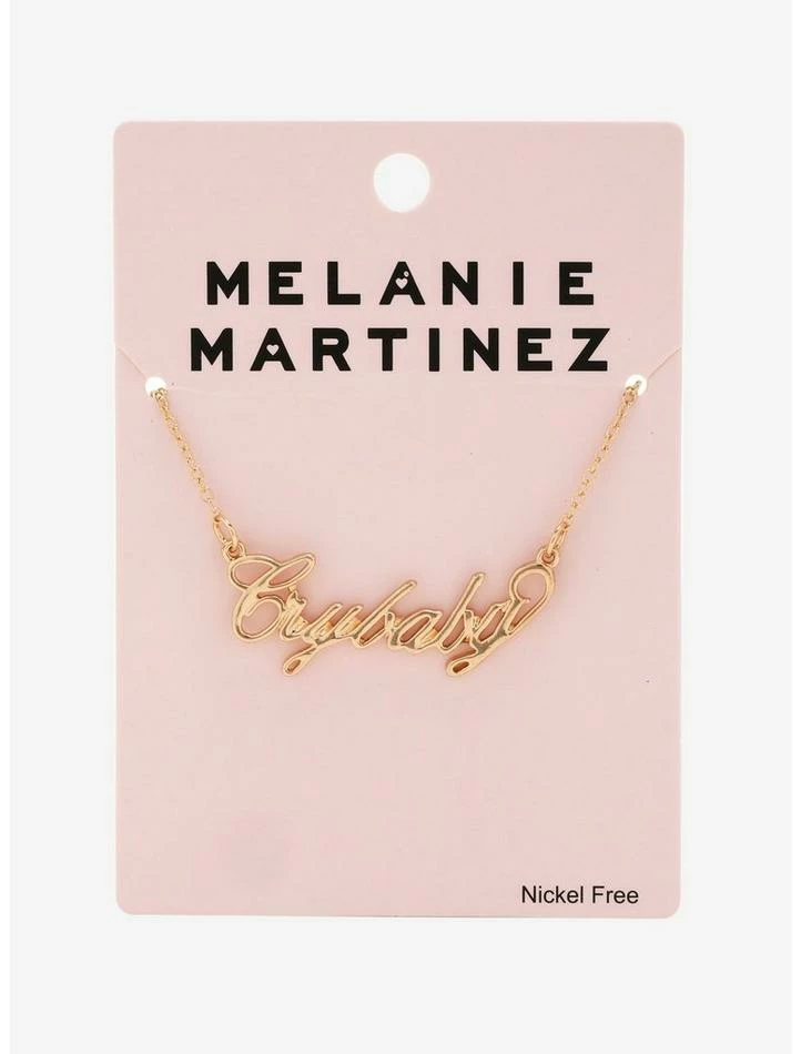 If you see yourself in Melanie Martinez’s Cry Baby character, this gold tone nameplate necklace belongs around on your neck.