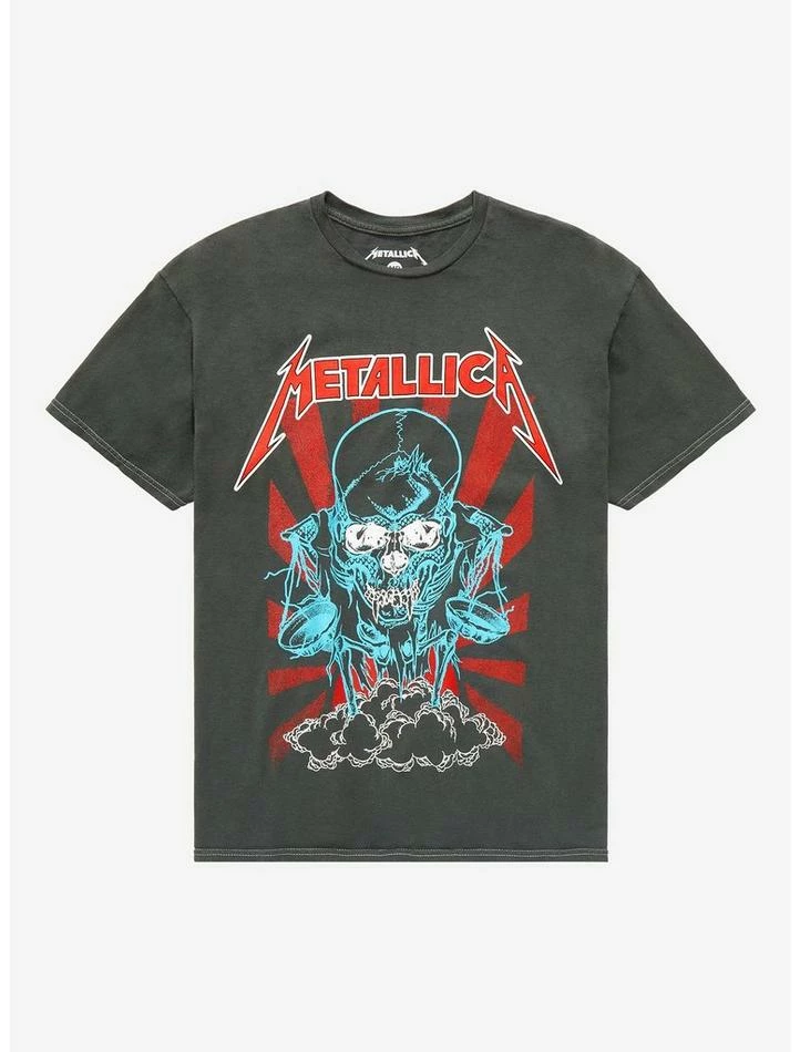 There’s no law against owning too many Metallica tees. This grey wash style belongs in your vast collection. It has contrast stitching and a large blue skull-insect hybrid looming over some clouds.