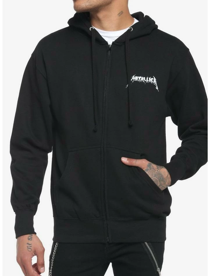 Your fave band, Metallica, is ready to take you into colder temps with this hoodie. It features Metallica’s logo on the front, as well as art inspired by the epic track “Sad But True” on the back. Drawstring hood and front pockets.