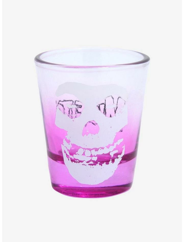 Getting ready for a ghouls night out? Have a drink first! This Misfits mini glass has a pink ombrΓ© design and features the Fiend Skull on one side, plus the band’s text logo on the other.