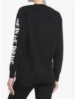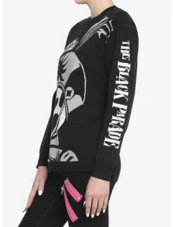 Show everyone you’ve joined the black parade in this itarsia knit sweater. Inspired by My Chem’s epic The Black Parade, it features a bold knit design of Pepe on the front, with the band’s text logo from that era on top. The album title goes down one sleeve.