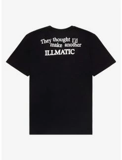 Seven years after his iconic debut Illmatic, Nas dropped Stillmatic in 2001. Stacked with tracks, it features “One Mic” which is referenced on the front of this tee. It also features the album title and his text logo, plus his face. The face has text reading “They thought I’d make another Illmatic“.