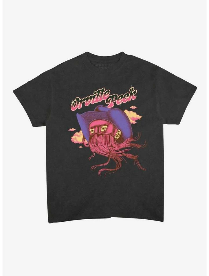 Add more music tees to your rotation, starting with this Orville Peck one! Rep your favorite country musician with this tee, featuring his name above an illustration of him wearing his signature fringed mask, with clouds behind.