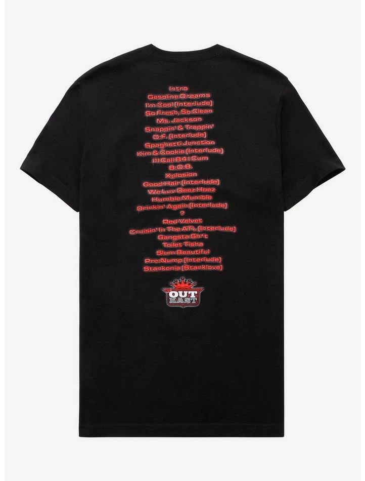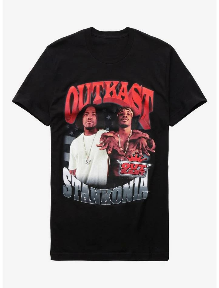 Look like love with this black tee from Outkast. Inspired by the album cover of Stankonia with their name above and album title below.