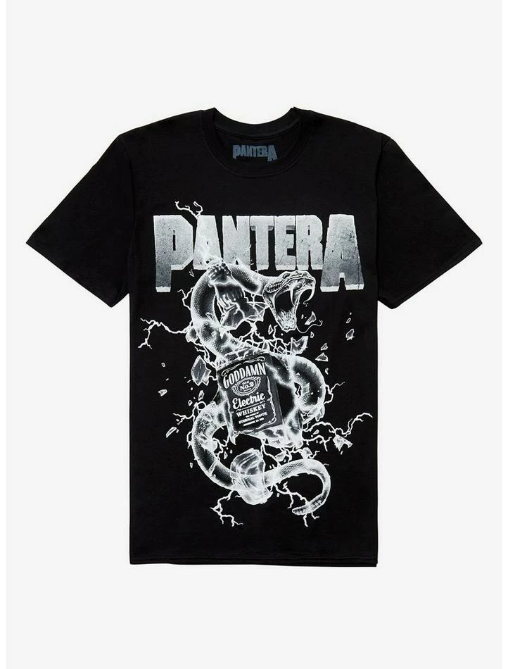 This tee? It’s electric! Inspired by Pantera’s track “Goddamn Electric” from Reinventing the Steel (2000), it features an exploding alcohol bottle, presumably from the brutal riffs heard in the song.