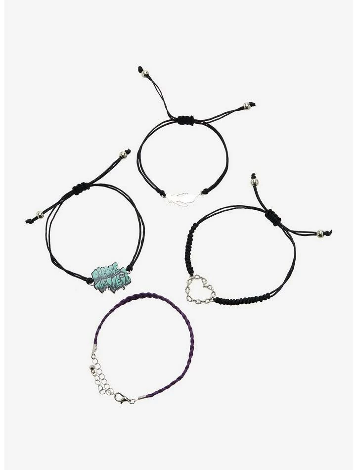Are you a longtime PTV fan? Then you’ll recognize the charms on these bracelets! This cord bracelet set features a purple braided one, plus black ones with their melting text logo, the Collide With The Sky girl and a chain heart. Rock them at their next show!