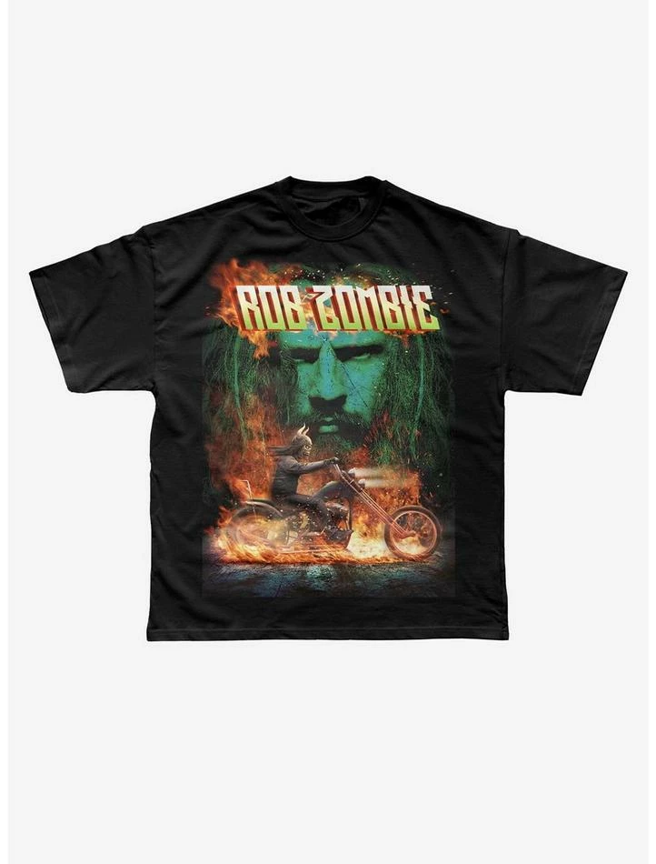 New Rob Zombie drip? We have it. This style features a demon wearing a Viking helmet on a motorcycle on the front with Rob Zombie’s face in the background, and a close-up of the Viking demon on the back.