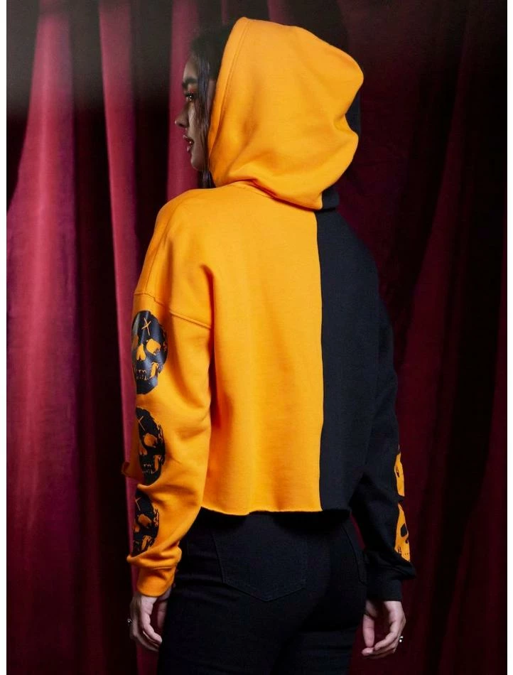 If you find yourself randomly chanting the lyrics to the chorus of “Dragula” by Rob Zombie, we’re right there with you. This split, cropped hoodie channels all the horror-inspired vibes from the classic track, and is decorated with skulls down each sleeve, Rob Zombie’s face split by a skull graphic, plus “Burn Through The Witches” text.