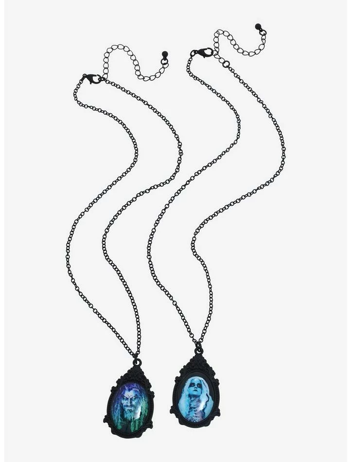 Matching Rob Zombie necklaces? We’re rising from the dead to cop! For all freaks on parade, these matching pendant necklaces are perfect for you and a bestie. Features Rob Zombie in one frame pendant and the Living Dead Girl in another.