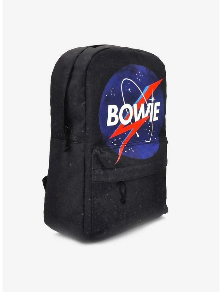 This David Bowie Space Backpack is perfect for a day at school, at the beach or at your favorite music festival! Each backpack features a spacious front pocket, an internal divider perfect for laptops or notebooks, an external media/headphones port, and adjustable padded straps. Officially licensed merchandise manufactured by Rocksax.