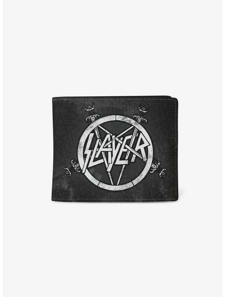 Keep your cash and cards organized in this classic Slayer Swords wallet. Each wallet features a secure coin pocket with zipper, spacious cash and receipt pocket, and five close-fitting card slots. Crafted from extremely durable PU material by Rocksax!