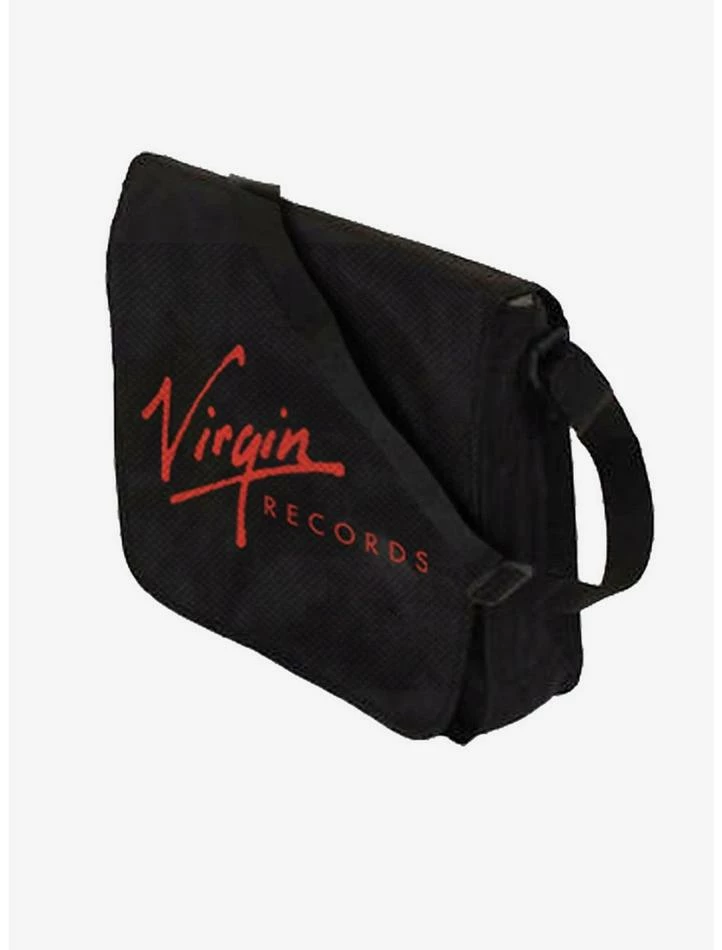 Check out this cool Virgin Records flap top messenger bag. Each flap top messenger bag can store up to 25 LPs. Perfect for school, college or taking your laptop to and from work. Load up the spacious main compartment and adjust the strap to carry your items in comfort all day long.