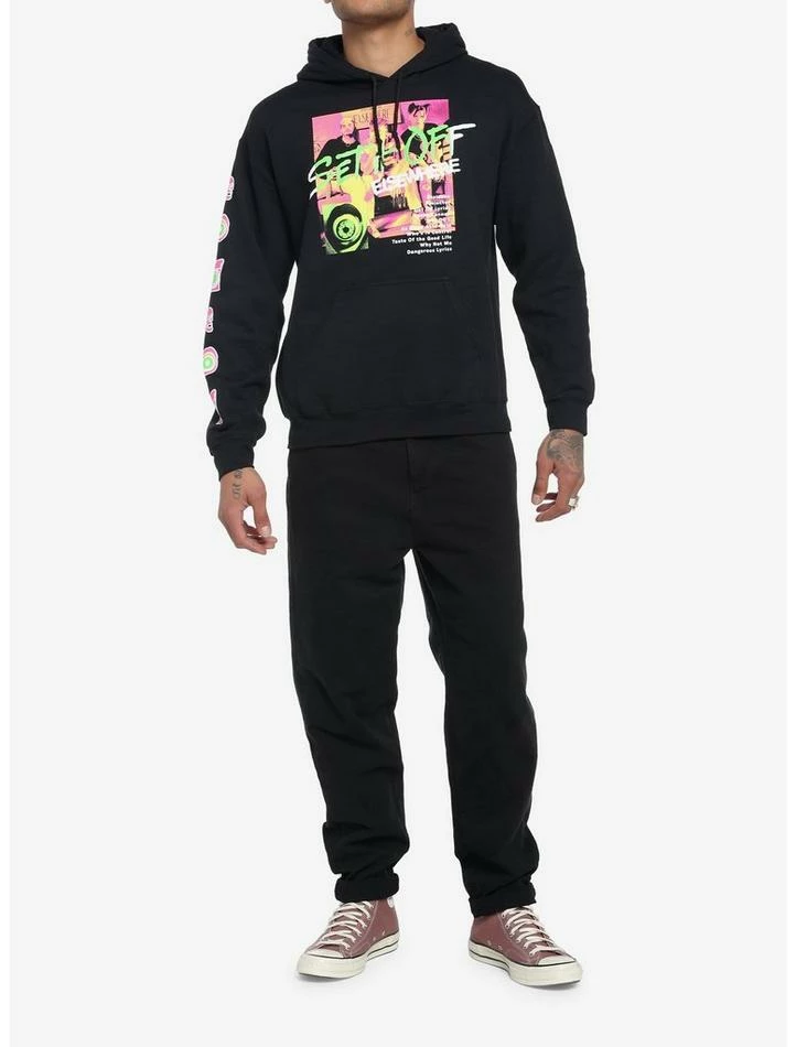 Your fave band, Set It Off, is ready to take you into colder temps with this hoodie. It features a photo of the band and art from the album cover of Elsewhere (2022), as well as a list of the album’s tracks.