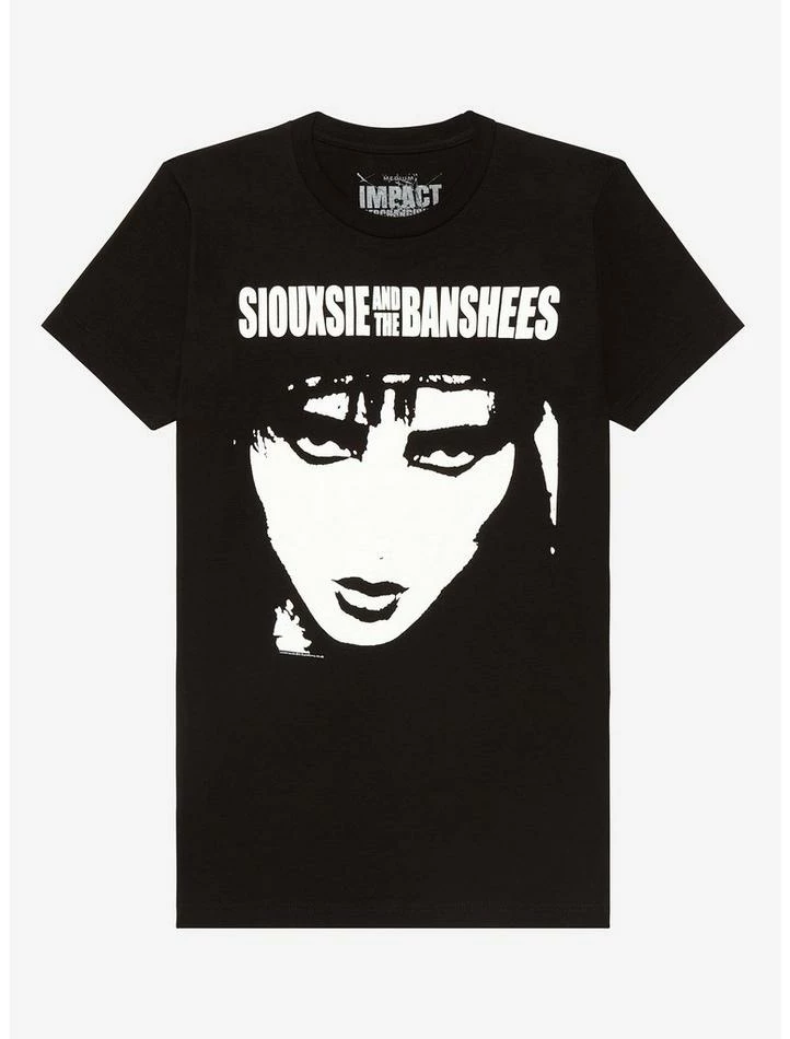 Spellbound by Siouxsie? Honor this OG goth queen with a fresh tee. This classic style shows a stylized portrait of the iconic frontwoman and the name of her band above.
