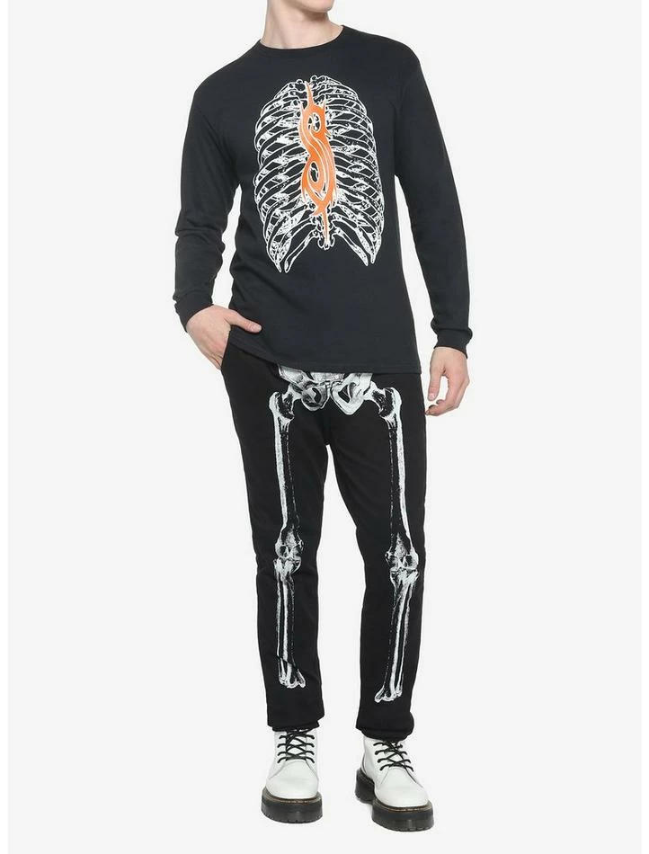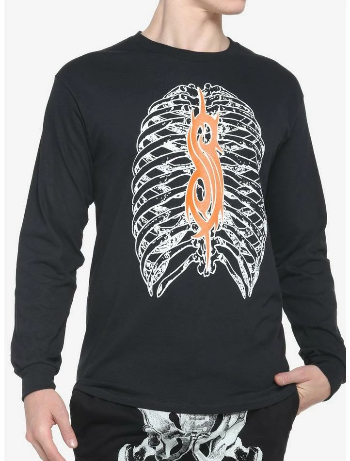 Long-sleeves for chilly weather are critical, darling. Get ready for when temps drop with this Slipknot tee! Featuring a rib cage design on the front, with their “S” logo in the center. The back highlights their nonagram with their text logo printed across.