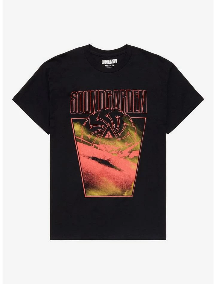 In your eyes, “Black Hole Sun” by Soundgarden off Superuknown (1994) is one of the best songs of all time. We hear you. This tee shows a hybrid graphic of the cover of Superunknown and a black hole on a scorched landscape.