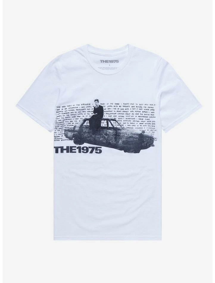 Still spinning The 1975’s track “Part of the Band”? We love its lyrics, so this tee gets our approval stamp. It features the lyrics written in the back of an image of singer Matt Healy sitting on an old car.
