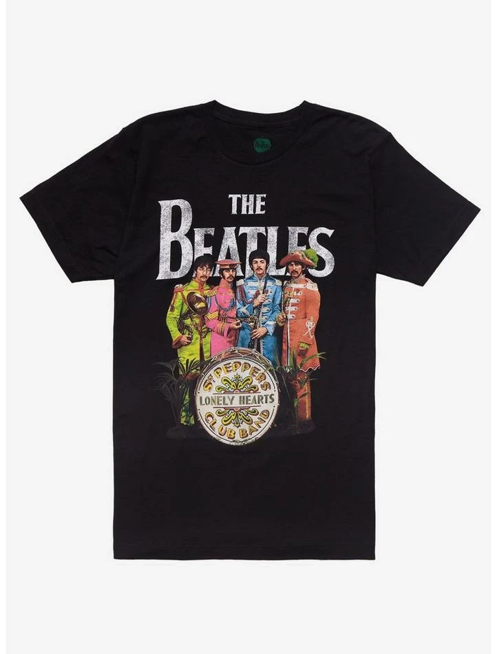 One of the greatest albums of all time, The Beatles’ Sgt. Pepper’s Lonely Hearts Club Band changed music with its concept-album driven psychedelic rock. Grab this tee today; it features a portrait of the band in their costumes from the album cover.