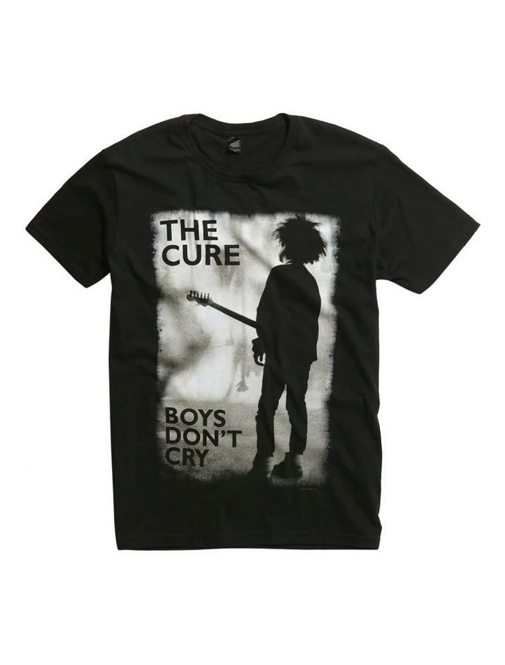 Black T-shirt from The Cure with a large “Boys Don’t Cry” image design on front.
