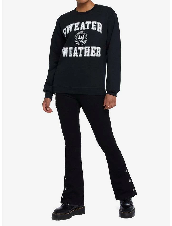 Grab this black sweatshirt from The Neighbourhood featuring a “Sweater Weather”-inspired logo on the front.