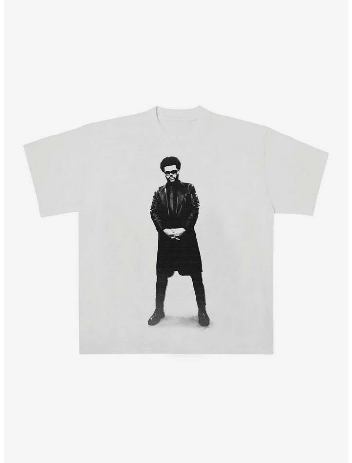 Β Is The Weeknd your fave? Then you need all the tees. This style features a black-and-white portrait of the artist standing.