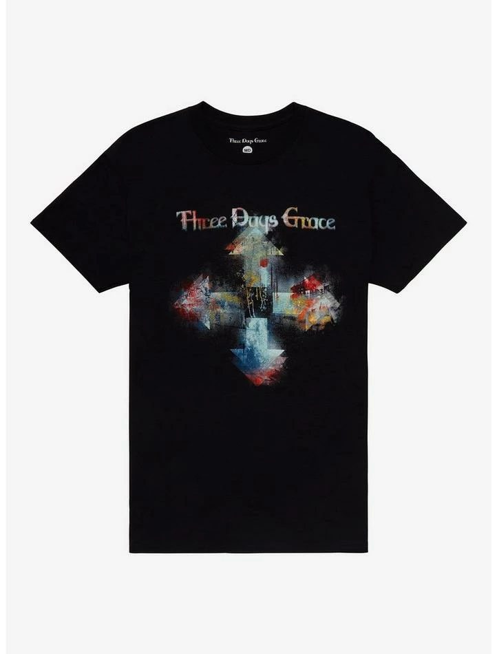 Three Days Grace will always be a go-to band, from Explosions (2022) to the band’s self-titled debut. This tee’s design is inspired by the cover of Outsider (2018), showing the arrow art but in multiple colors.