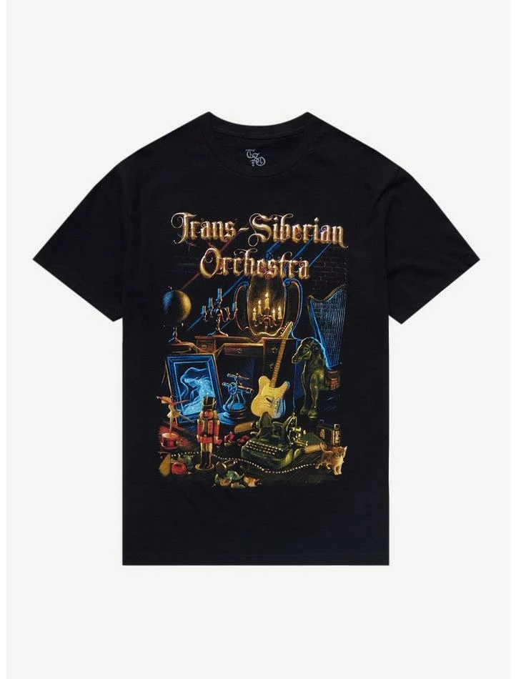 Need a new Trans-Siberian Orchestra tee to rep your love of their holiday tracks? Grab this tee featuring an attic scene filled with things like a nutcracker, an electric guitar, ornaments and more.